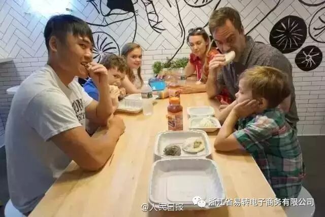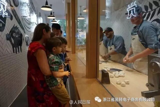 店里做包子的员工都是美国人。好奇宝宝围观做包子。