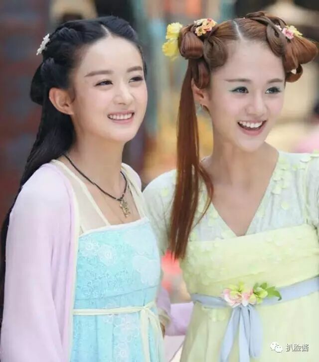 大幂幂也没有逃过造型师的魔掌,还是少女时的这身造型简直丑哭,头上的两个揪揪加上这身显得膀大腰圆的衣服真的比旁边的玄女好看吗?