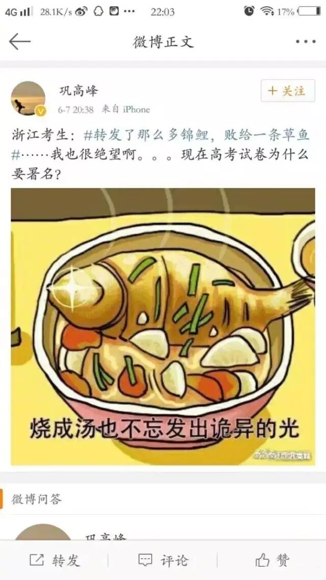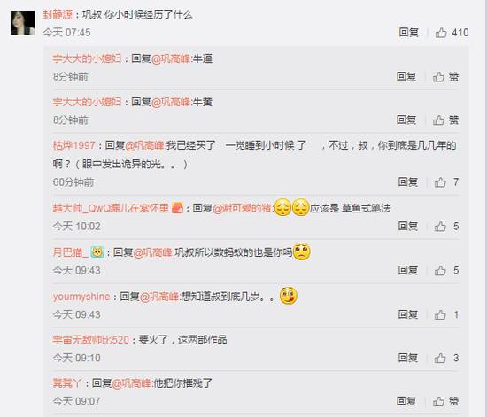 于是纷纷聚集到巩高峰微博评论要标准答案,