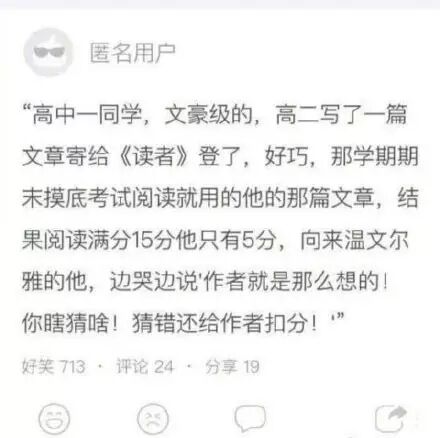 毕业再也没寒暑假了我去:阅读理解就是套路,固定的思维,固定的答案。真心不懂阅读理解的意义 ,不是说好了一千个读者一千个哈姆雷特的吗?